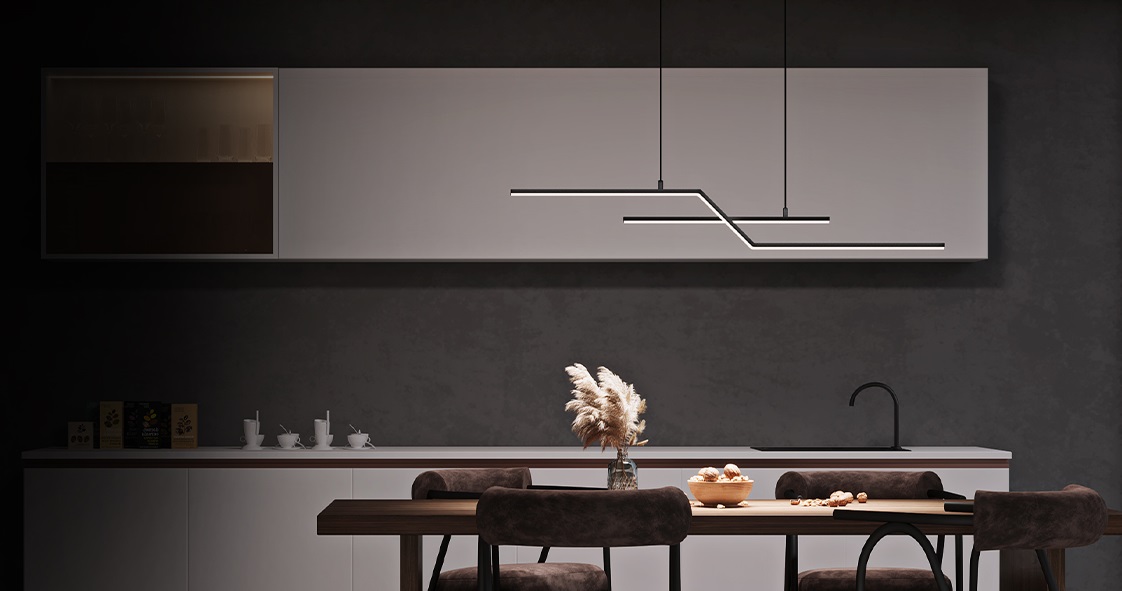 Šviestuvas turi 1 m ilgio reguliuojamą kabelį, leidžiantį keisti pakabos aukštį ir pritaikyti jį skirtingoms erdvėms. Tai suteikia galimybę montuoti šviestuvą tiek virš ilgo valgomojo stalo, tiek virš virtuvės salos ar net darbo zonos. Dėl 105 cm pločio konstrukcijos šviesa pasiskirsto plačiai ir tolygiai, efektyviai apšviečiant 10–15 m² patalpas.