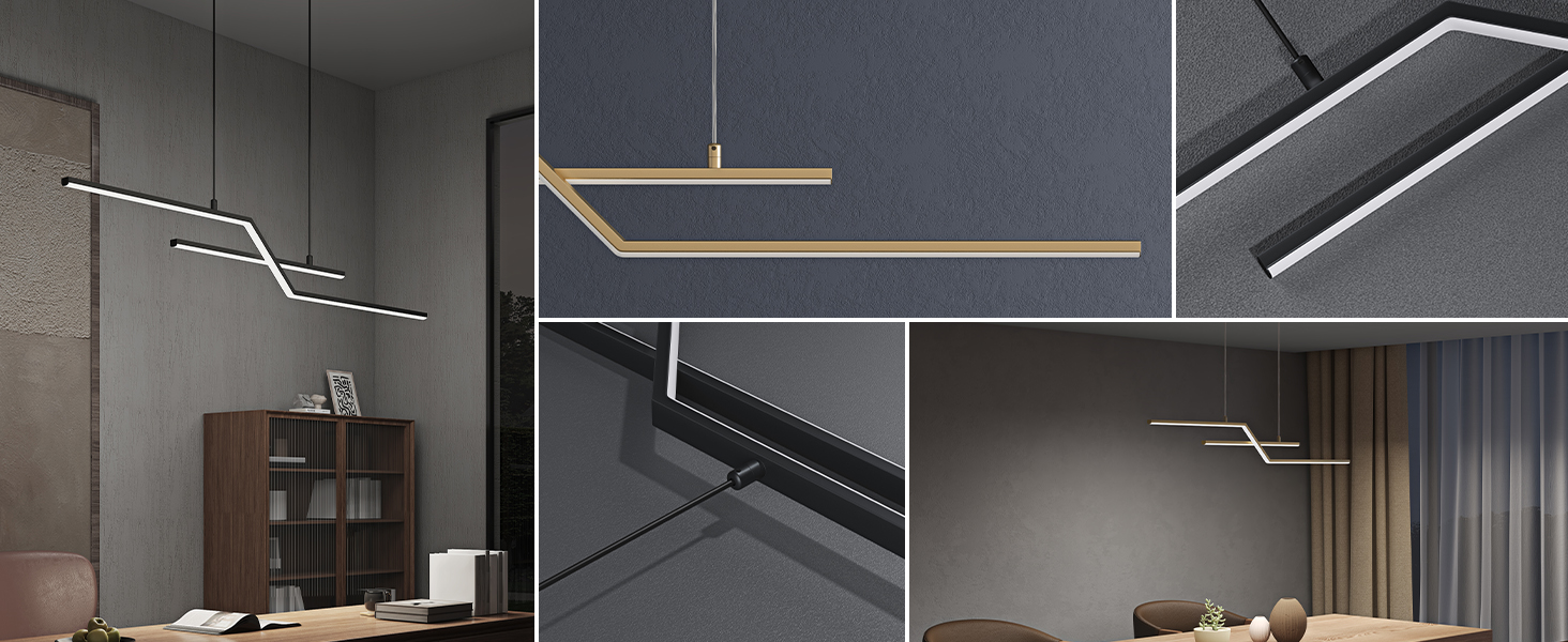 Auksinis dizainas suteikia interjerui šilumos ir subtilios prabangos. Šis pakabinamas šviestuvas puikiai tinka valgomojo, svetainės, virtuvės, biuro, miegamojo ar net modernaus darbo kambario apšvietimui. Dėl savo estetikos ir funkcionalumo jis dera tiek su minimalistiniu, tiek su prabangiu ar skandinavišku stiliumi.