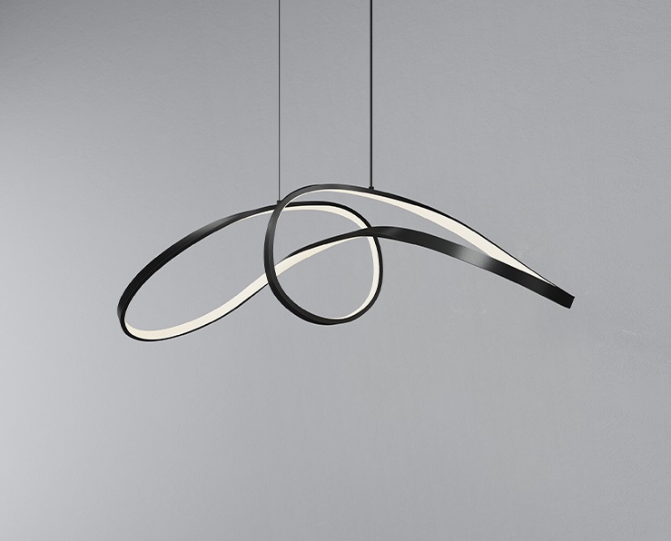 „Penrith PR7094“ pasižymi unikaliu dizainu – trys banguojančios metalo juostos jungiasi į vieną skulptūrišką siluetą, o centrinis žiedas suteikia kompozicijai papildomo gylio. Matinis juodas paviršius išlaiko rafinuotą, subtilų įvaizdį, o silikoninis šviesos difuzorius užtikrina lengvai ir tolygiai sklindančią LED šviesą. Šis šviestuvas puikiai tinka tiems, kurie ieško ne tik funkcijos, bet ir išskirtinio dizaino elemento.