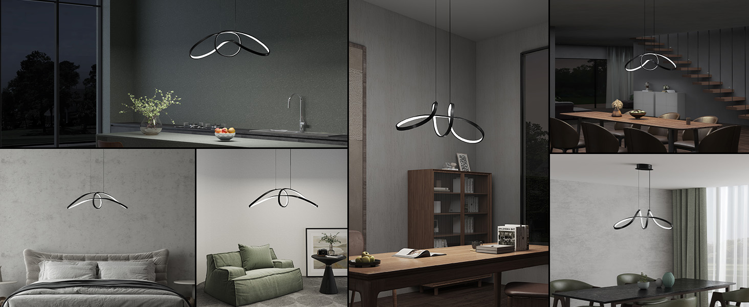 Šviestuvas aprūpintas 1 m ilgio reguliuojamu kabeliu, leidžiančiu patogiai rinktis norimą kabėjimo aukštį. 90 cm pločio konstrukcija idealiai pritaikyta virš valgomojo stalo, virtuvės salos, svetainės centro ar net modernaus darbo stalo. Dėl proporcijų ir formos šviestuvas puikiai tinka tiek erdviems, tiek vidutinio dydžio kambariams.