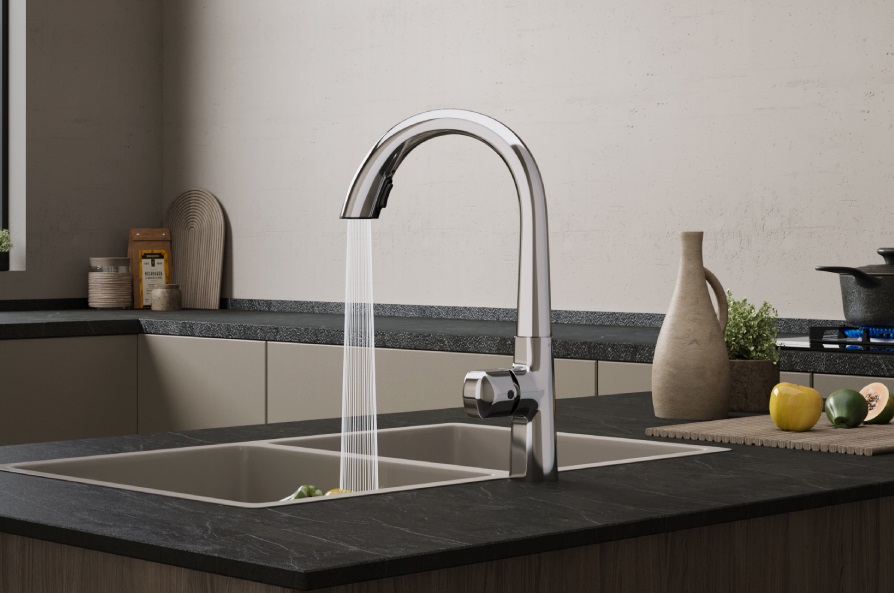 Maišytuvas padengtas pažangia daugiasluoksne chromo danga, kuri suteikia paviršiui lygumą, blizgesį ir papildomą apsaugą nuo išorinių veiksnių. Paviršius yra atsparus vandens dėmėms, riebalų likučiams ir pirštų žymėms, todėl jį lengva palaikyti švarų – pakanka paprasto nuvalymo. Tai leidžia virtuvės maišytuvui ilgą laiką išlikti estetiškam ir higieniškam.